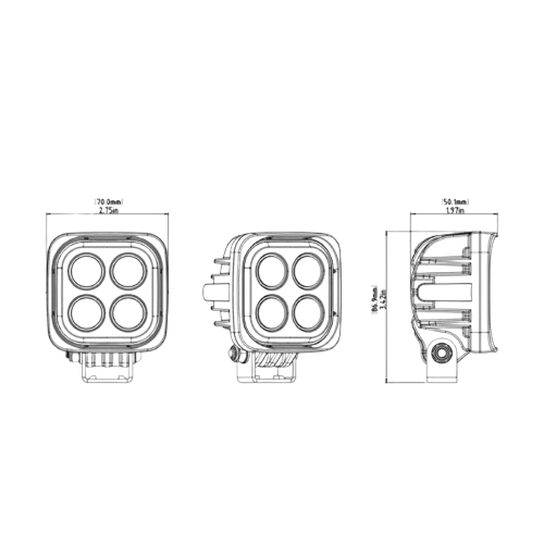 – Sistema de 4 LED de alta potencia que proporciona una iluminación intensa y uniforme.