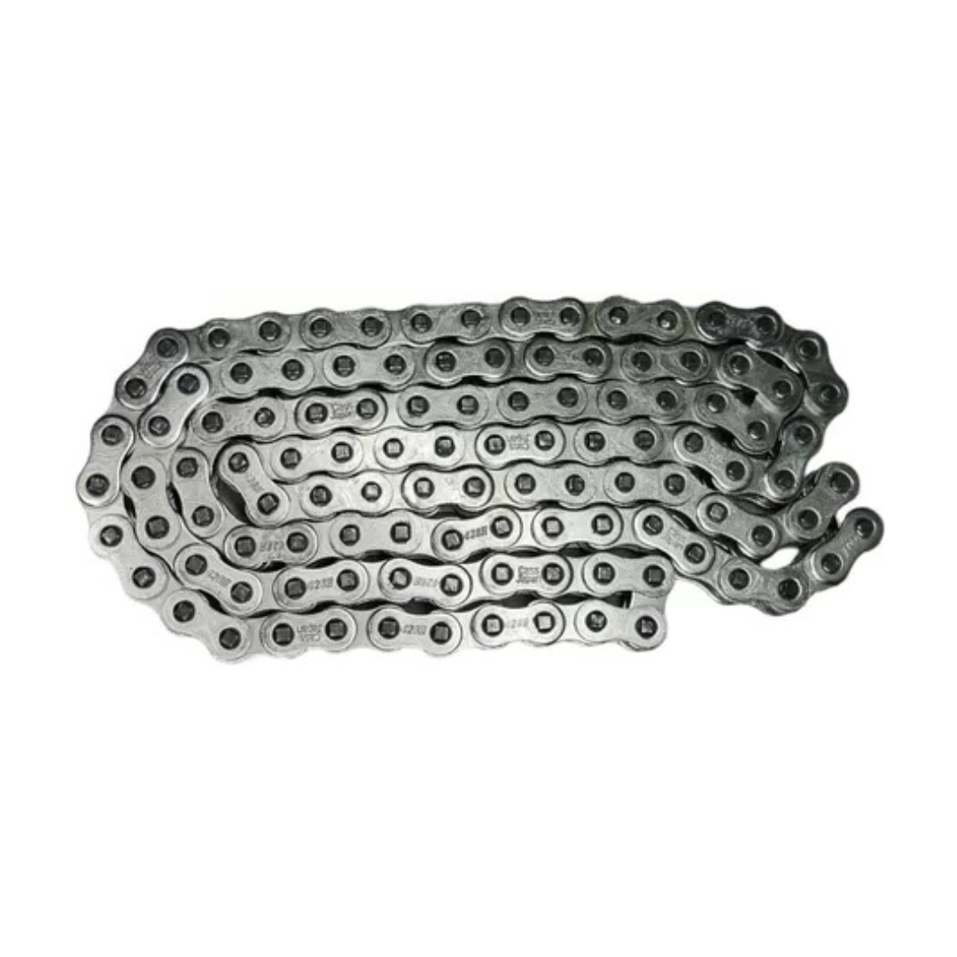 - Fabricado con material superior y el mejor modo de procesamiento y tratamiento térmico para satisfacer los requisitos específicos de motocicletas. La estructura de esta cadena esta especialmente diseñada para una mínima abrasión y extensión, incluso cuando se opera a altas velocidades