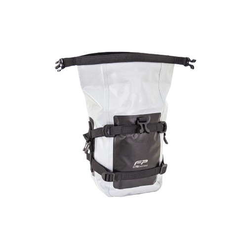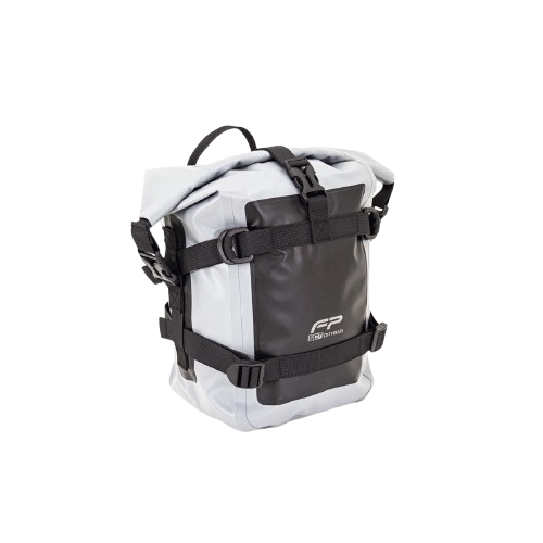 La Maleta Impermeable para Defensas DryBag SC7 Negro-Gris Fire Parts es un equipaje liviano y resistente que se fija a las defensas laterales de la moto para proteger tus pertenencias del agua, polvo y vibraciones. Ideal para trayectos diarios o salidas off-road donde la protección frente al clima es clave.