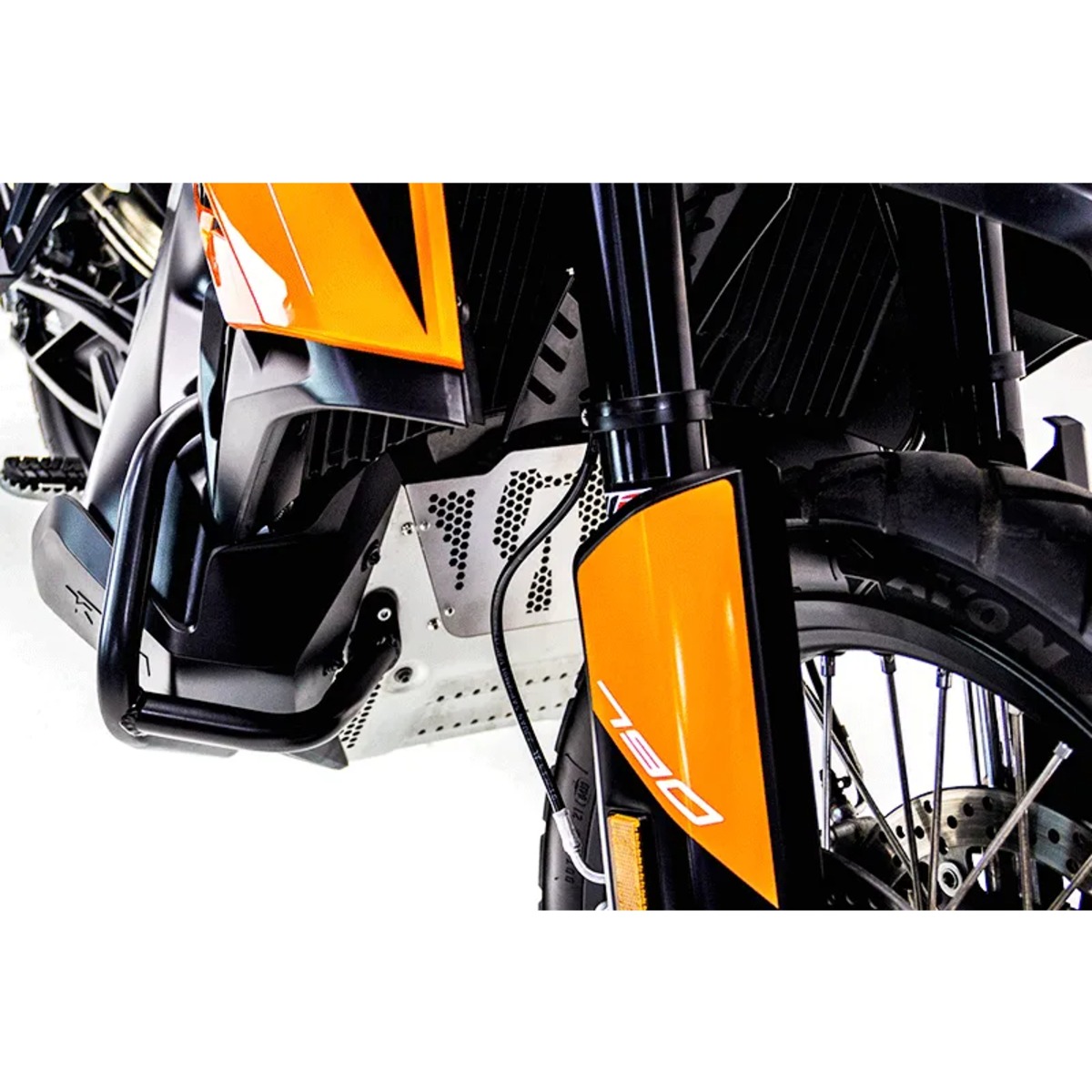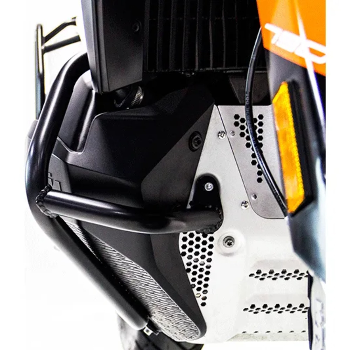 El Protector de Carenaje Fire Parts para KTM 790 Adventure y Adventure R es un accesorio de protección diseñado para resguardar los carenajes laterales y zonas expuestas de la motocicleta frente a caídas, golpes o deslizamientos. Está desarrollado específicamente para los modelos 2019 en adelante, manteniendo un ajuste preciso y una integración perfecta con el diseño original de la moto.