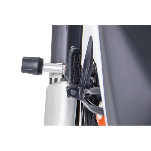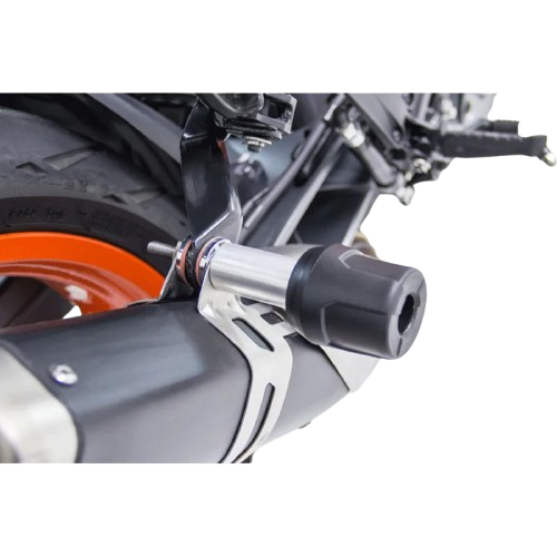 El Protector de mofle tipo slider KTM Duke 250/17-UP / 390/17-UP es un accesorio diseñado para proteger el escape/slip-on superior expuesto de la moto. Cuando la moto se cae, este protector ayuda a evitar daños costosos en el mofle, que suelen ser caros de reparar. Además, aporta algo de estética reforzada con estilo racing/minimalista.