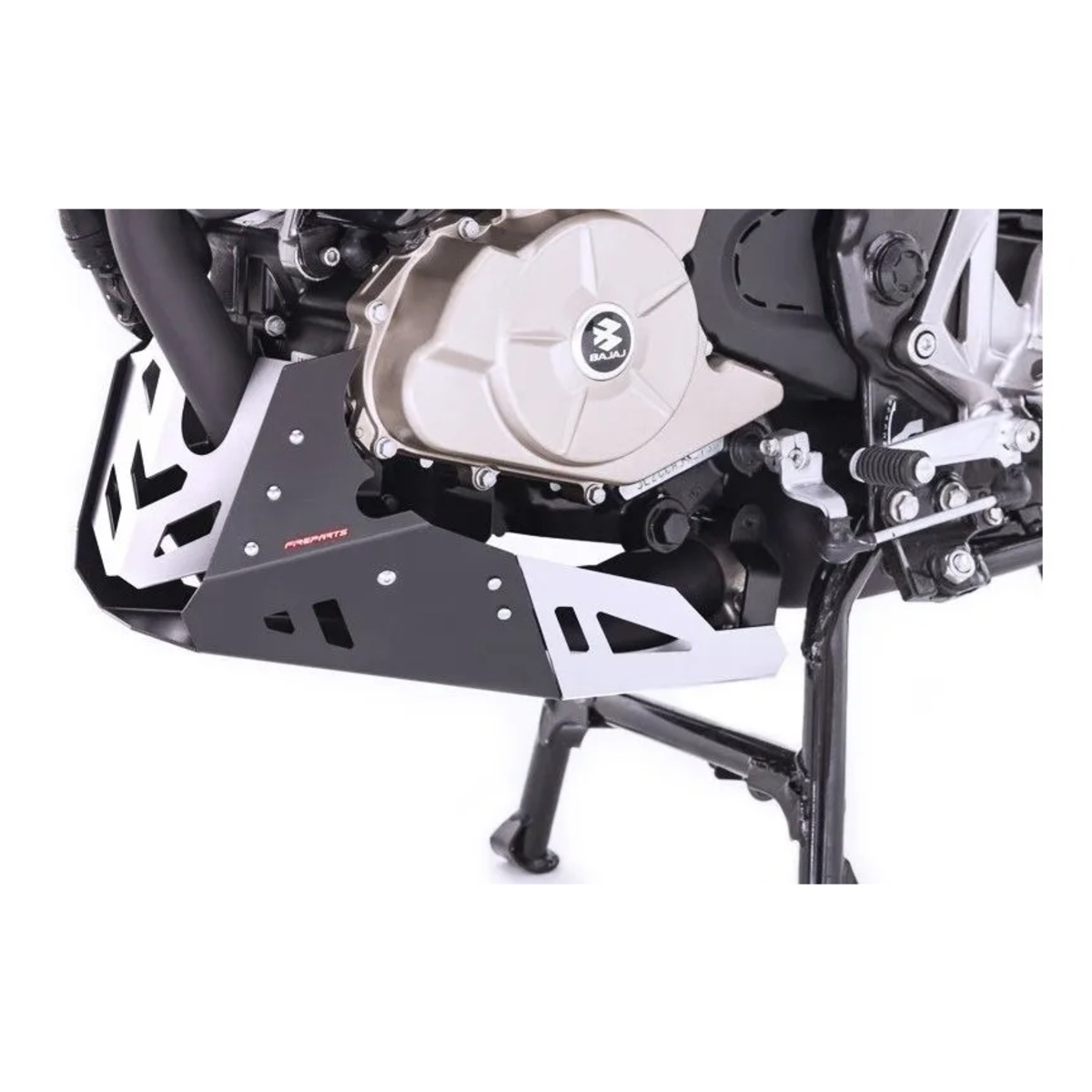 El Protector de Motor Fire Parts para Bajaj Pulsar NS200 es un accesorio diseñado para proteger la parte baja del motor frente a golpes, impactos de piedras y obstáculos propios de la conducción urbana y en carretera. Este modelo está fabricado específicamente para la NS200, garantizando un ajuste preciso y una correcta integración con la estructura de la motocicleta.