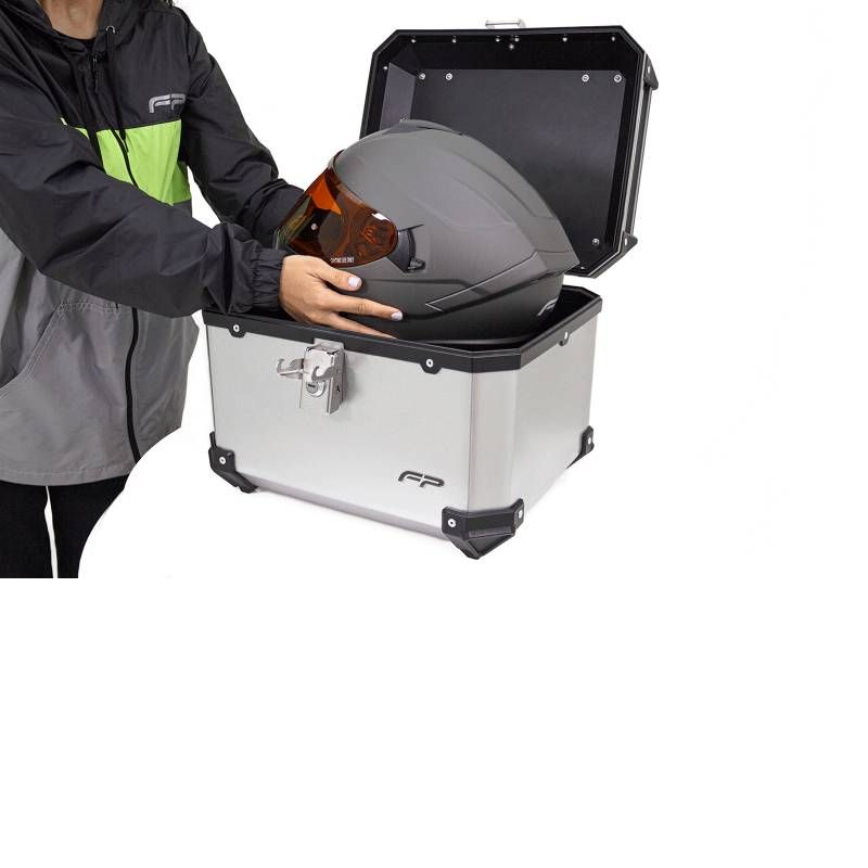 Cuenta con capacidad de 40 litros y de color gris, las nuevas maletas para moto Maverick 2.0 están construidas en polipropileno de alta resistencia y durabilidad con puntas reforzadas y chapa en acero inoxidable que respalda la seguridad de la maleta (incluye la chapa con llave de repuesto). Incluye su base para que instales en tu parrilla.